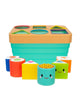 The perfect gift for a new baby. The soft, squishy structure is perfect for the baby's environment and different materials and surfaces are easy to grasp and great for mouthing. Flexible parts provide the perfect manipulation challenge for little hands and contrasting colors stimulate the baby's developing vision and awaken auditory awareness. The set includes the peek-a-boo beads rattle, ring O' Links, ring rattle, and linky links.