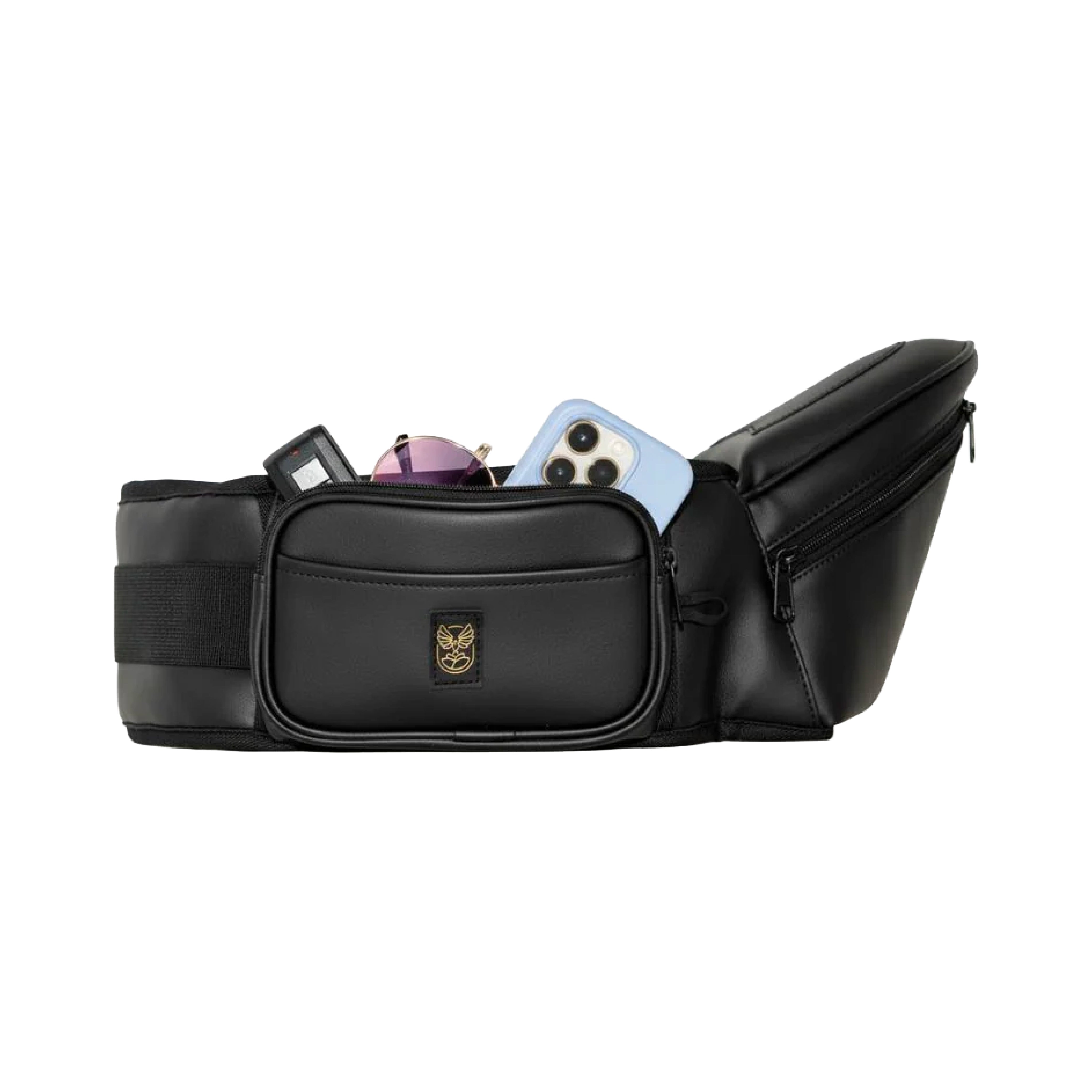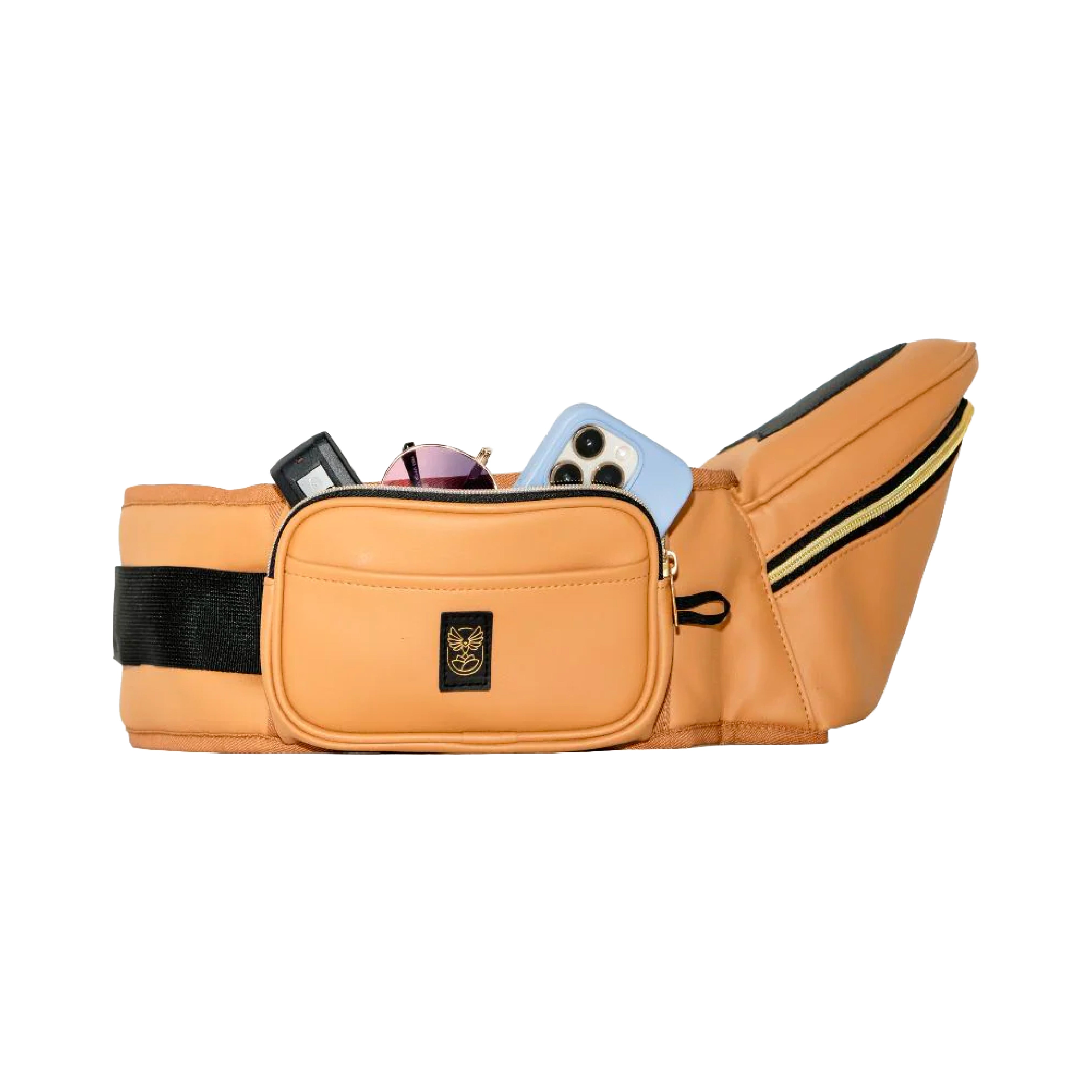With built-in storage, a hidden bottle holder, and a sleek vegan leather finish, this carrier replaces bulky diaper bags. The non-slip seat keeps baby secure while the padded waistband ensures lasting comfort.