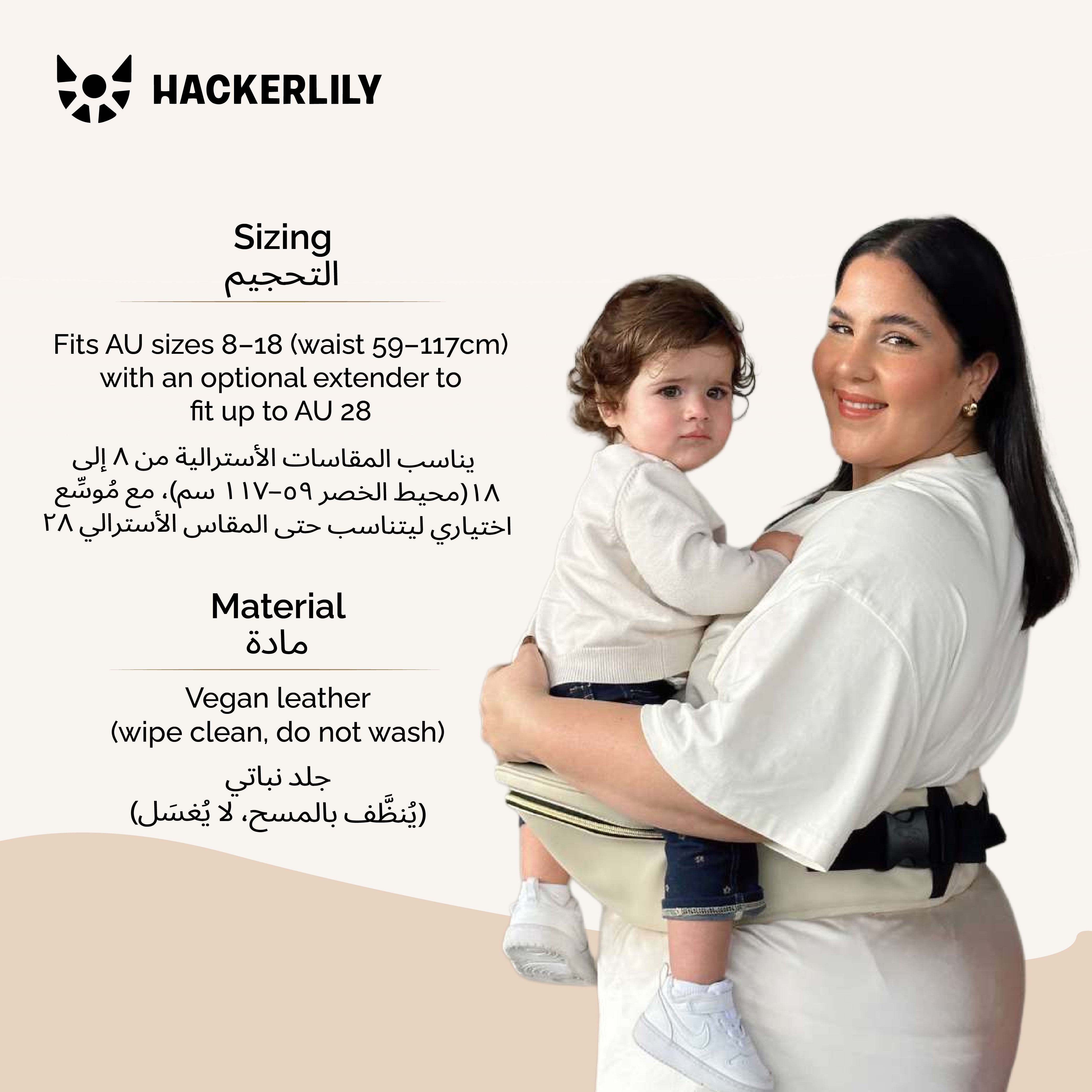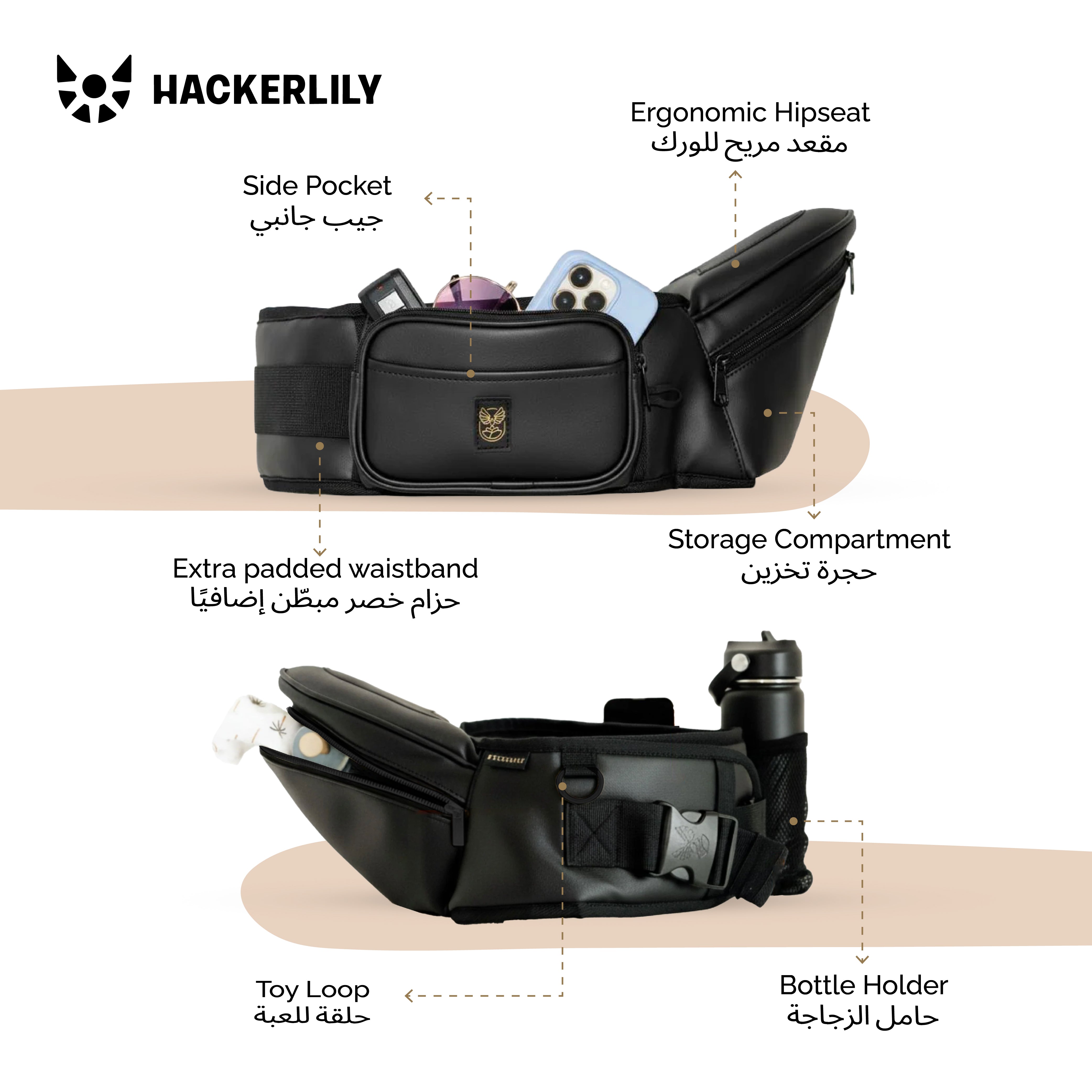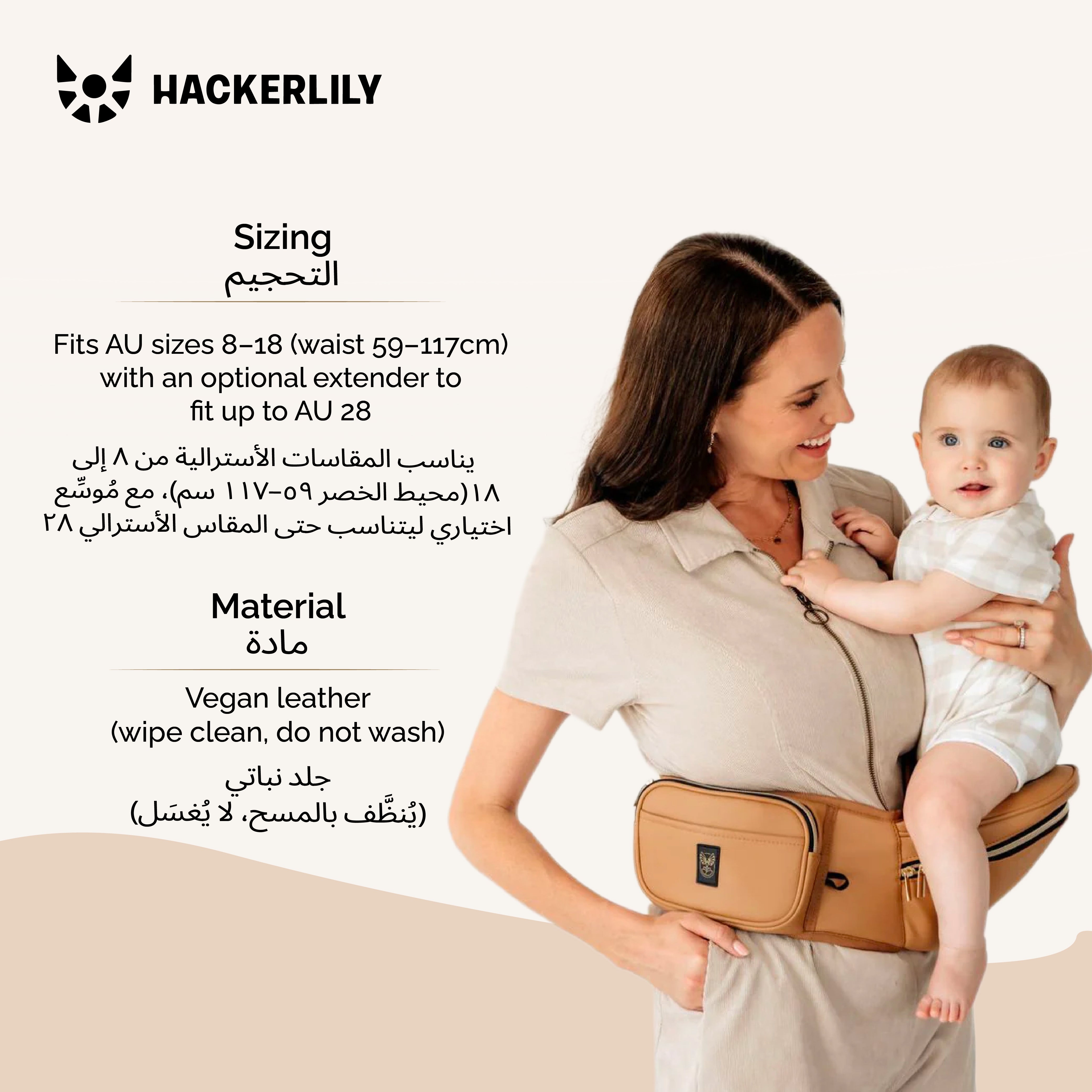 Ergonomic Hip Seat Baby Carrier | Strap-Free Hipseat with Storage & Bottle Holder | Non-Slip Seat | Vegan Leather | For Babies & Toddlers | 30×18×15 CM