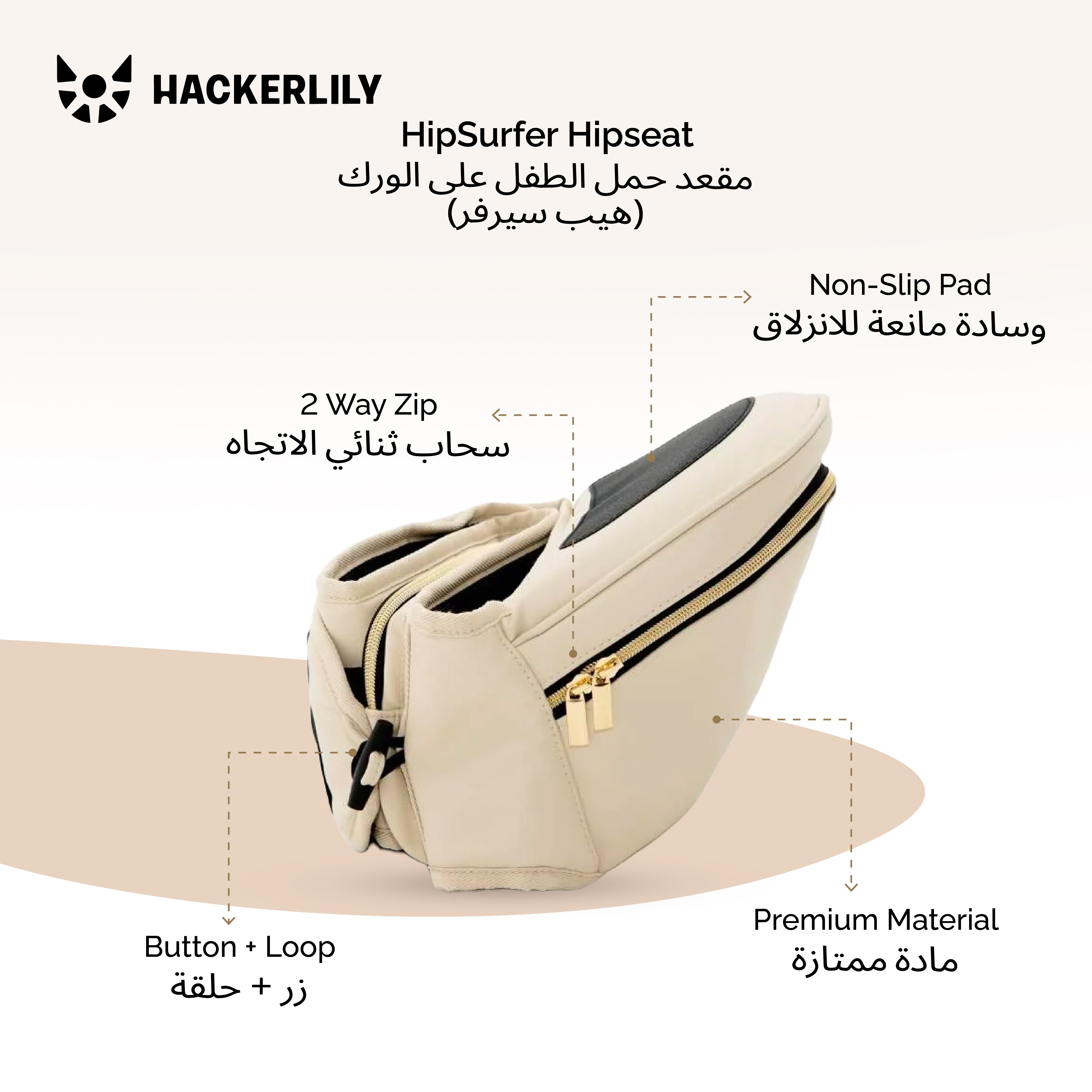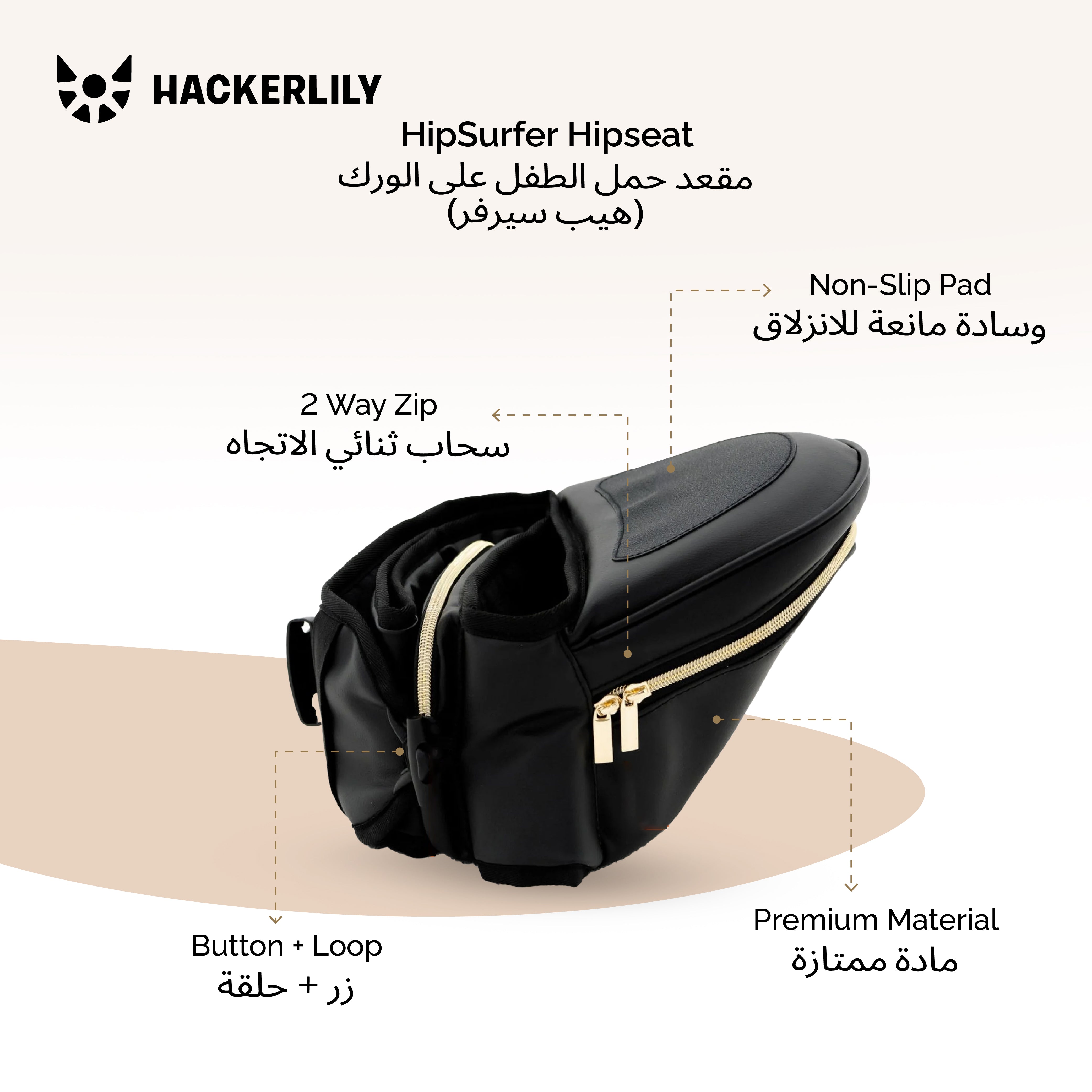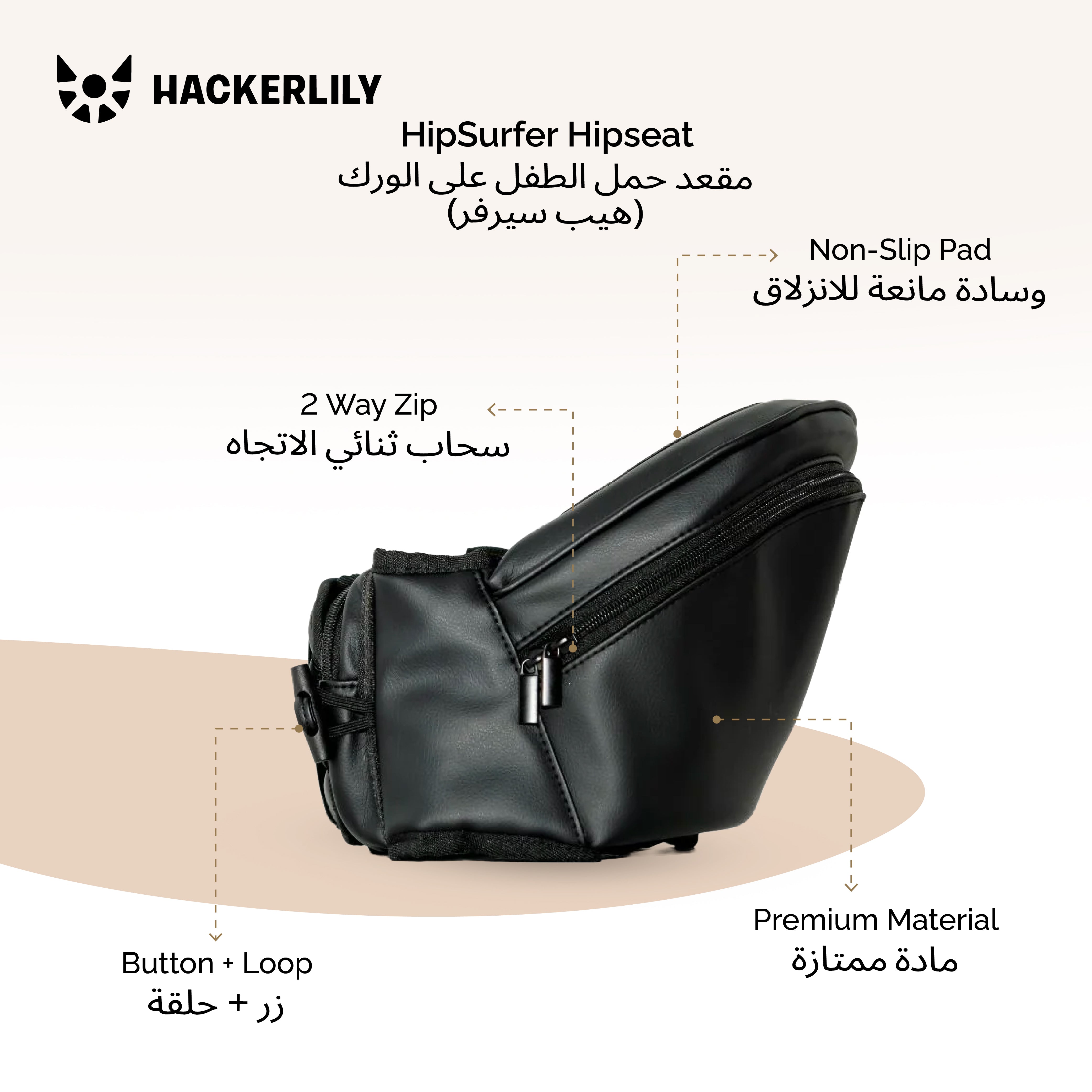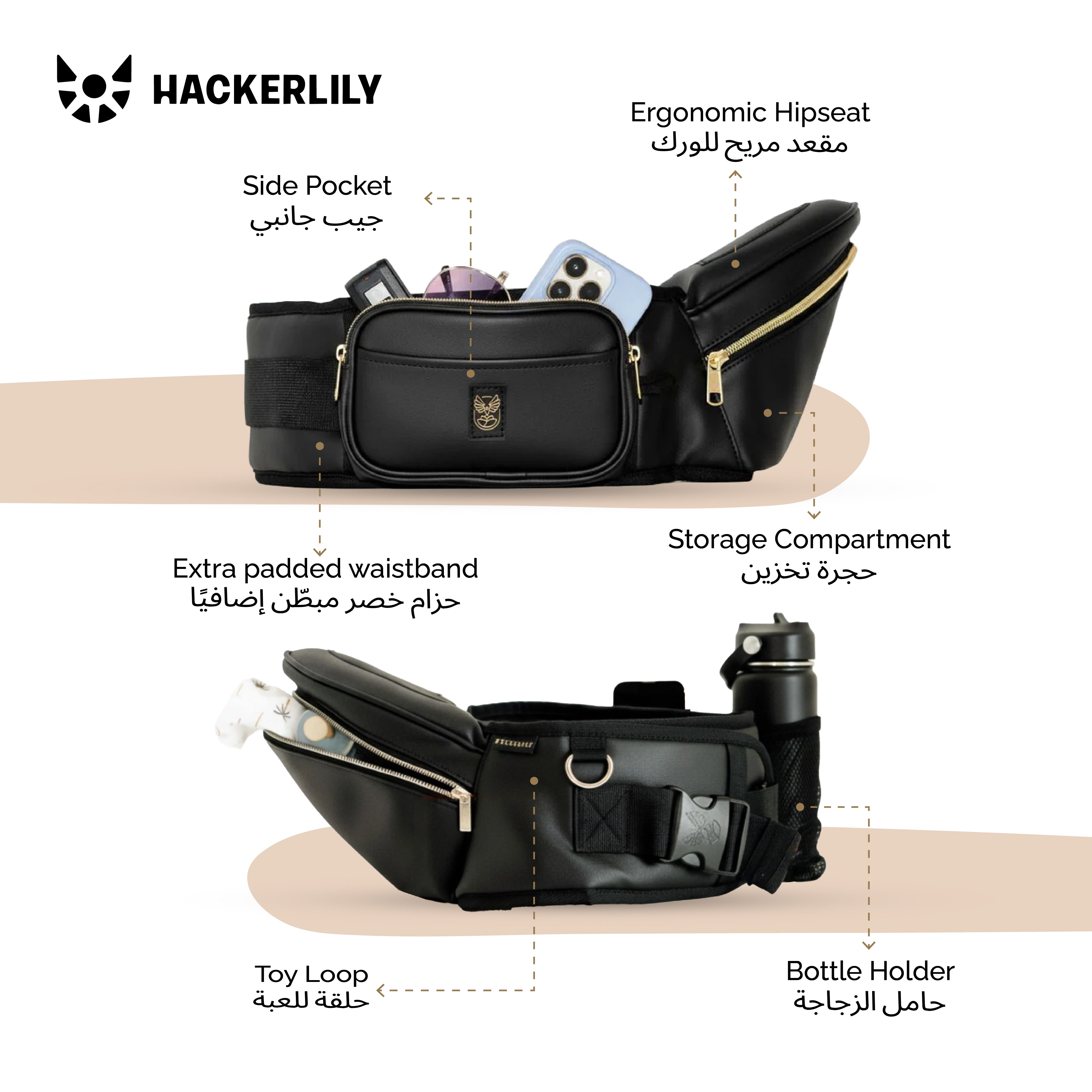 Ergonomic Hip Seat Baby Carrier | Strap-Free Hipseat with Storage & Bottle Holder | Non-Slip Seat | Vegan Leather | For Babies & Toddlers | 30×18×15 CM